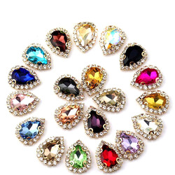Fábrica al por mayor 10*14mm forma de gota hebilla de cristal cosido a mano 3D DIY accesorio de costura hecho a mano